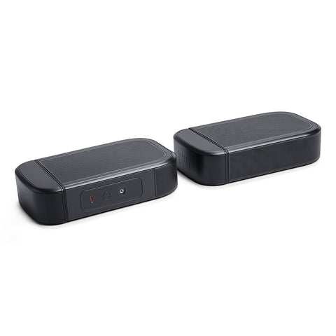 REAL PANORAMIC SURROUND SOUND WITH DETACHABLE WIRELESS SPEAKERS: Elevate your 3D surround sound experience with dynamic, immersive height. Four up-firing speakers in the soundbar and wireless rear speakers deliver true Dolby Atmos® sound. No extra wires. No power connections. Just lift the detachable surround speakers off the soundbar—you can do it with just one hand—and place them behind where you want to sit, instantly transforming them into a true surround sound setup. It's that simple. Whether you're binge-watching your new favorite show or hosting a movie night, the speakers' rechargeable long-lasting batteries mean you'll enjoy immersive, cinematic surround sound for hours. When you’re done, simply place them back on the soundbar to charge overnight.