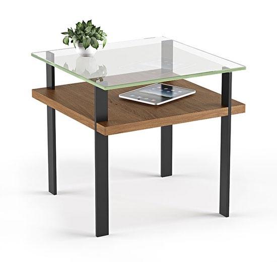 With a pinwheel design and unique details, BDI's TERRACE End Table 1156 is a beautifully functional table. Combining tempered glass tops, thick wood panels, and rigid steel support, the collection comes in two coffee table sizes as well as an end table and console. Available in Natural Walnut and Charcoal Stained Ash finishes.