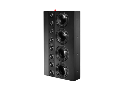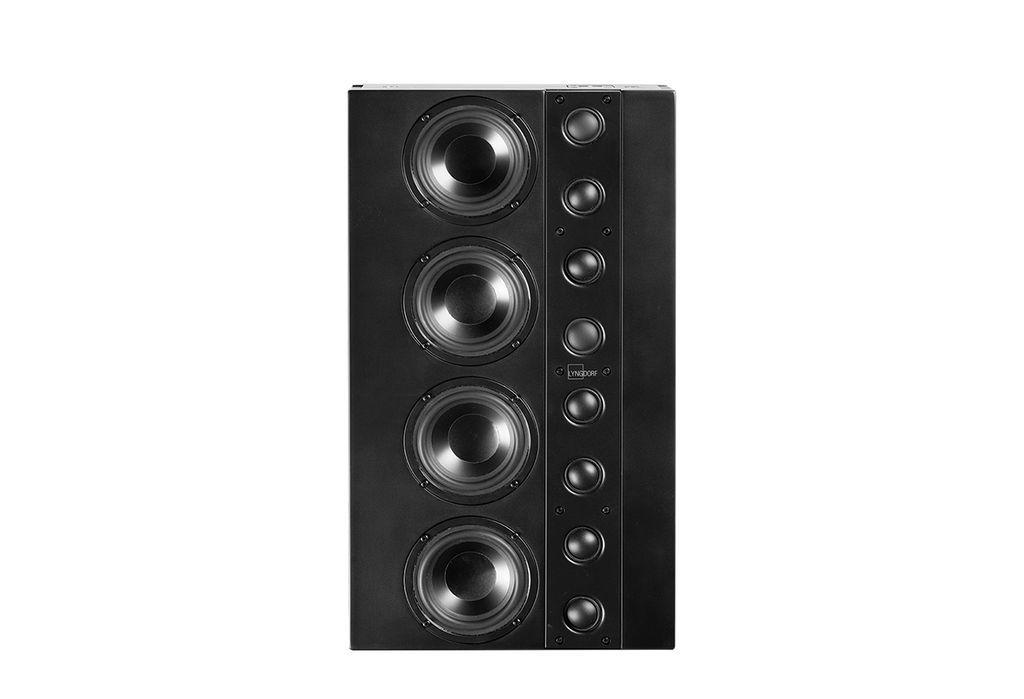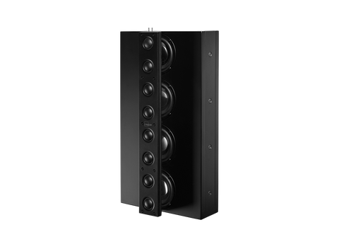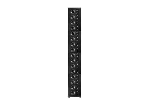 The Lyngdorf LS-1000 Line Source Speaker is engineered for uncompromising home theater performance, drawing on Steinway Lyngdorf’s reference designs. Each modular unit houses four 115mm aluminum midrange drivers and eight 1" soft-dome tweeters, and when stacked, four modules form a true line array with 16 midrange drivers and 32 tweeters. This configuration minimizes floor and ceiling reflections, ensures uniform sound across the room, and delivers effortless dynamics. Available in Left, Right, and Center models for precise dispersion, the LS-1000 is slim, shallow, and easy to install behind acoustically transparent screens.