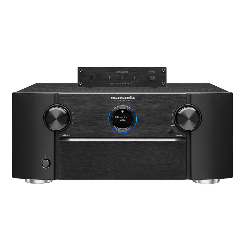 This bundle includes (1) Marantz AV7706 11.2 Channel 8K Ultra HD AV Surround Pre-Amplifier and (1) Marantz VS3003 3-Port (3 In/1 Out) 8K HDMI Switcher (Black)