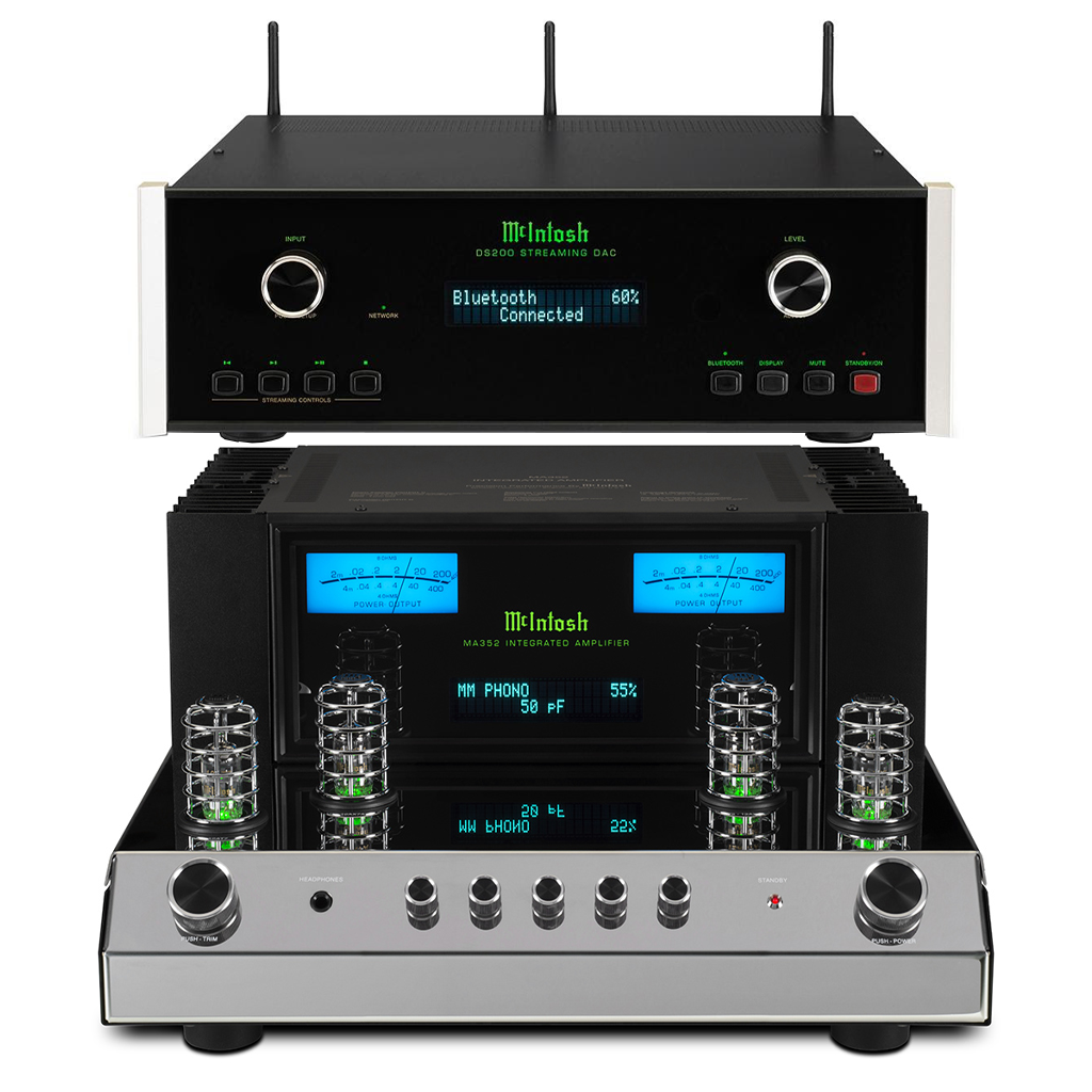 This bundle includes (1) McIntosh MA352 2-Channel Hybrid Integrated Amplifier and (1) McIntosh DS200 Streaming DAC
