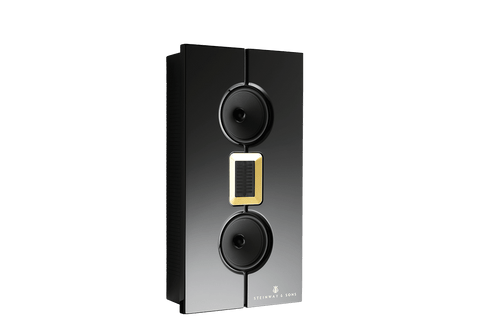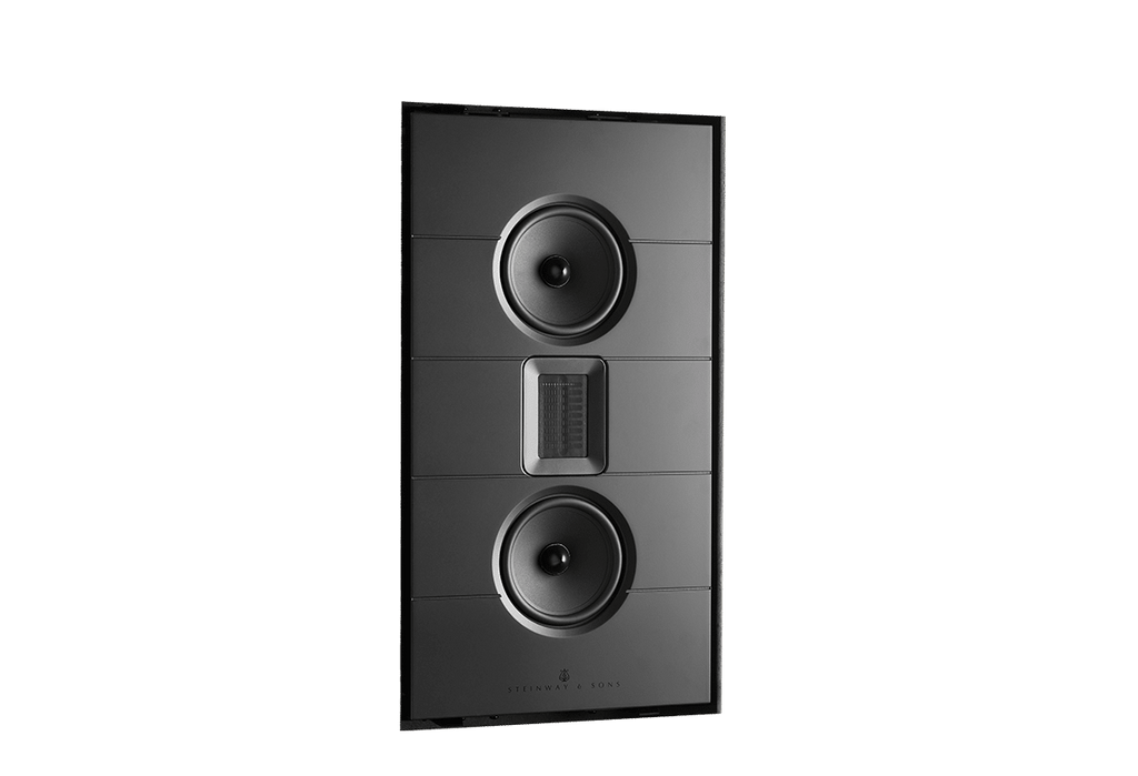 The Model M series is anything you want it to be. For style-conscious audio enthusiasts who prefer a discreet, customizable installation, the Model M delivers. The system’s slim and stylish architectural speakers can be mounted on wall, semi on wall, or in wall. Whether a large home theater or an intimate living room, your environment reflects your design style. The Model M just makes it sound better. The Model M has extraordinarily high-quality midrange drivers and an AMT tweeter, providing outstanding sound quality. Together with a left and right Steinway woofer, the sound performance from this in-wall / on-wall speaker is on-par with the very best floor standing high-end audio loudspeakers. In combination with large Steinway front speakers, the Model M also keeps the sound quality level adequately high used for the center and surround channels. The Model M l/r speaker comes in a discrete matte lacquer. It is also offered in a high gloss black piano lacquer with gold accents, and it can be customized to any color. The cabinet is 100% aluminum, employing internal bracings and a thick front to hold the drive units in place. This dampens resonance, and compared to wood cabinets, the Model M’s structure minimizes gross volume.
