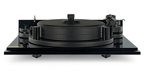 Weighted pendulum style sub chassis. Hanging on the three suspension springs, this provides a rigid dense platform to mount the main bearing, platter and tonearm assembly, ensuring there is no movement between them, while also acting as a ‘resonance / vibration sink’ drawing away unwanted vibrations from the sensitive elements of the turntable.