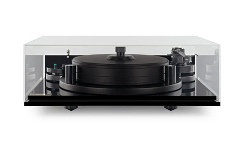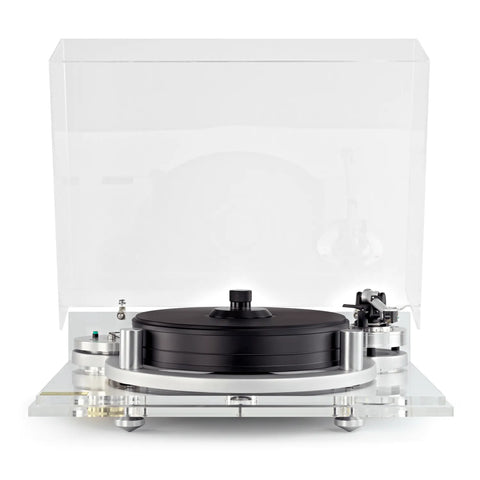 Hinged lid. The turntable comes with a hinged clear acrylic lid to protect the turntable from dust and damage. The hinges are made in two parts that allow the lid to be easily removed if required.