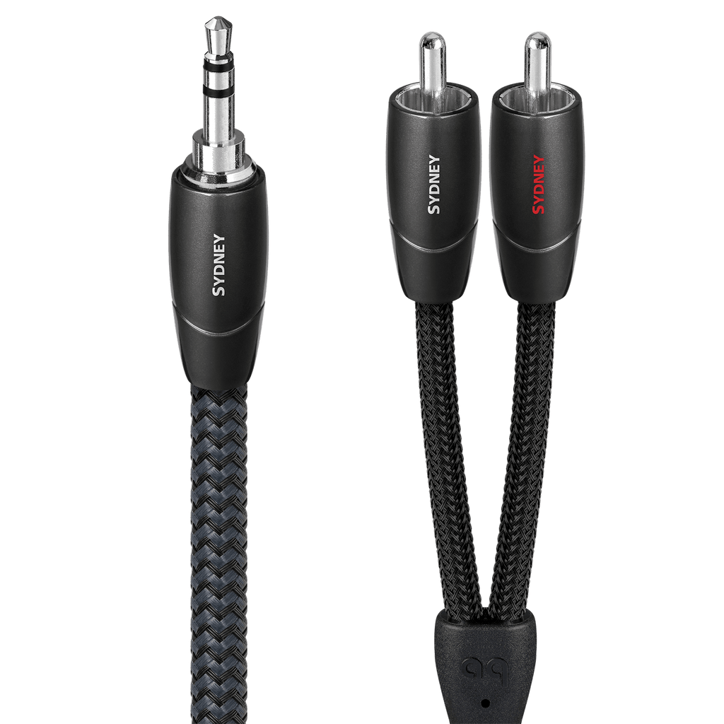 Connect a wide range of audio electronics with this AudioQuest Sydney 3.5mm Mini > 2-Male RCA analog interconnect, meticulously designed for outstanding flexibility and versatility. Solid Perfect-Surface Copper+ (PSC+) conductors minimize distortion, Polyethylene Air-Tube insulation preserves dynamic contrasts, and a Carbon-Based Noise-Dissipation efficiently dissipates high-frequency noise for cleaner, clearer, more naturally beautiful music.