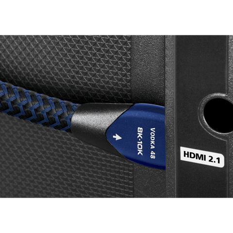 AudioQuest Vodka 48 8K-10K 48Gbps HDMI cable combines superior materials and superior design to produce a superior entertainment experience. Meticulously designed for enhanced sound quality and outstanding overall performance, Vodka 48 features 10% Silver-Plated Copper conductors with AudioQuest’s Level-3 Noise Dissipation technology: a high-loss carbon layer, sandwiched between layers of metal around the 4 FRL + eARC pairs, further enhances noise-dissipation. Of course, all AudioQuest 48G HDMI cables can transfer up to professional 10K Ultra HD video, support Dynamic HDR, and have the conductors and bandwidth required for eARC’s enhanced sonic capabilities. Taking performance even further, all 19 conductors, comprising A/V and eARC signals, all Ground-Reference drains, and control and power conductors, are properly controlled for the most efficient dissipation of Radio-Frequency Noise.