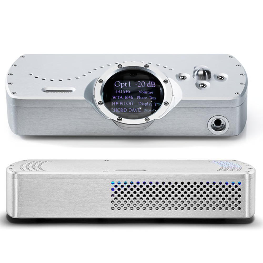 This bundle includes: (1) Chord Electronics DAVE DAC Preamplifier and Headphone Amp, and (1) Chord Electronics ÉTUDE 150w Stereo Power Amplifier.