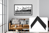The installation process couldn't be easier. Simply connect the four corners using the provided corner keys then hook the frame onto the top edge of the TV and let go and watch as the side latches instantly click into place on your Samsung Frame TV. The entire process will take approximately 2 minutes.