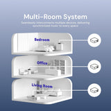 Room Correction: Enables acoustic correction via an external measurement microphone or smartphone microphone, automatically detecting large living rooms and compact bedrooms. Intelligently eliminates environmental reflections to deliver flawless music immersion in every space.