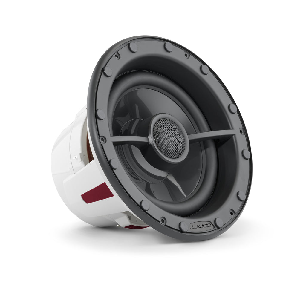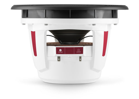 The speakers are equipped with an 8.8-inch DMA-optimized woofer for impressive power handling and a 1.25-inch silk dome tweeter, designed to withstand harsh environments and deliver crystal-clear high frequencies. The PV-FX8 model offers powerful bass, eliminating the need for a subwoofer, but can also be paired with one for enhanced dynamics. The oversized tweeter provides louder, cleaner sound, perfectly matched to the large woofer. A weatherproof 2-way passive crossover and tweeter protection circuit ensure durability and reliability. While the PV-FX8 speakers can be used with as little as 50 W per channel, amplifiers between 100-200 W per channel are recommended for optimal performance. All Pavilion™ speakers are produced at JL Audio's Miramar, Florida factory with global components.