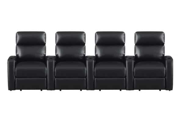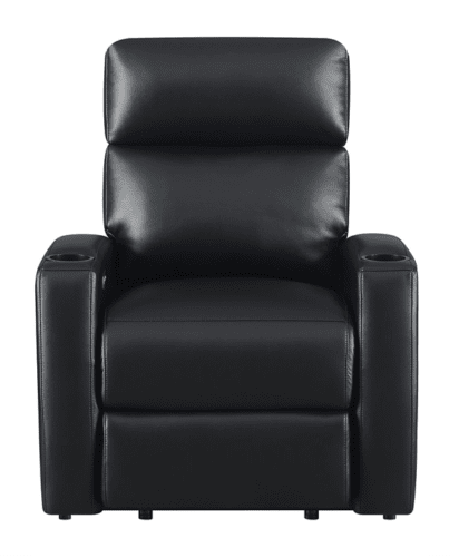 The Galaxy II is an affordable, entry-level chair designed for dealers to compete with furniture retailers. It features a polyurethane fabric that mimics the look and feel of leather. Each chair with arms includes power recline, a cupholder (excluding the armless style), and a USB charging port. The chair is fully covered in high-quality black polyurethane fabric.