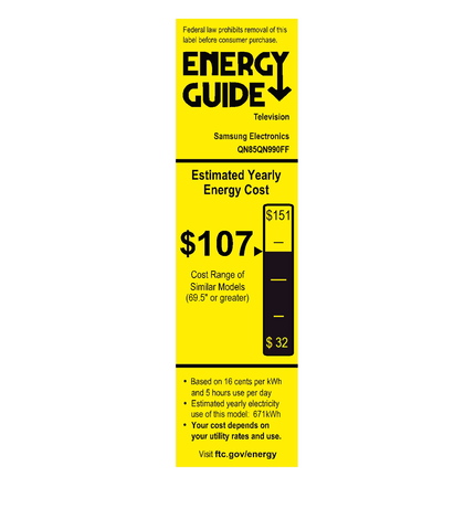 Max Power Consumption (W): 98”: TBD / 85”: 415W / 75”: 375W / 65”: 335W