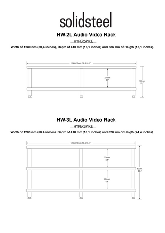 Experience unparalleled organization and style with the Solidsteel Hyperspike HW-L Series Rack. Perfect for multimedia systems, this rack is specifically designed to hold televisions, center channels, and soundbars, making it the ultimate storage solution for your entertainment needs. Elevate your space with the sleek and functional design of the HW-L Series Rack.