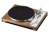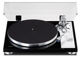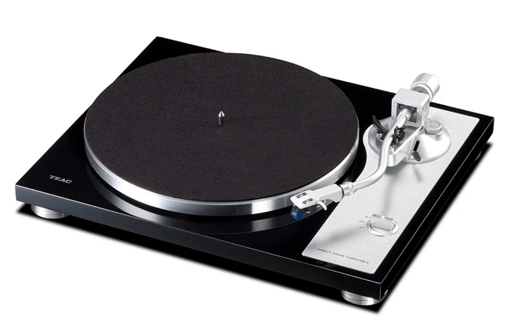 The TEAC TN-4D-SE is a high-quality direct-drive analog turntable designed for crisp and clear sound. It features a sleek, low-profile design made possible by a newly-developed brushless DC servo motor, which provides stable speed and smoother rotation, eliminating the issue of cogging. The tonearm uses knife-edge pivot-point bearings, delivering high-resolution sound that standard bearings cannot match. Additionally, it comes with a highly-regarded Oyster MM cartridge from SUMIKO and a built-in PHONO EQ amplifier, allowing direct connection to hi-fi systems. It also includes precision adjustments for stylus pressure and anti-skating, along with a die-cast aluminum platter and shock-absorbing feet. The turntable supports 33-⅓ and 45 rpm speeds, making it a versatile and stylish choice for audiophiles.